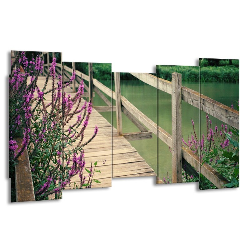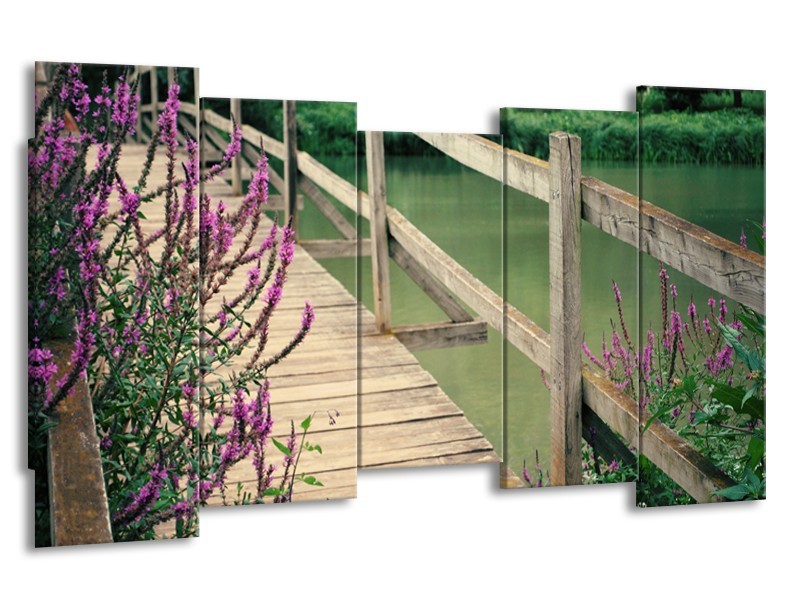 Glasschilderij Natuur, Brug | Groen, Paars, Grijs | 150x80cm 5Luik