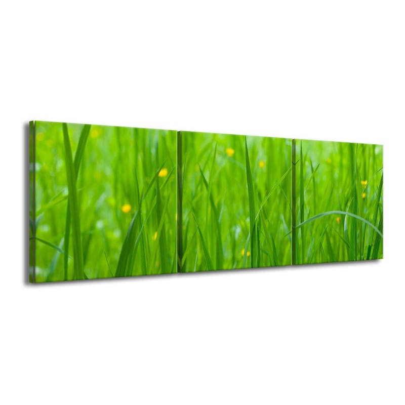 Glasschilderij Natuur, Gras | Zwart, Groen | 150x50cm 3Luik