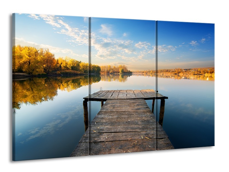 Glasschilderij Natuur, Water | Blauw, Bruin, Grijs | 165x100cm 3Luik