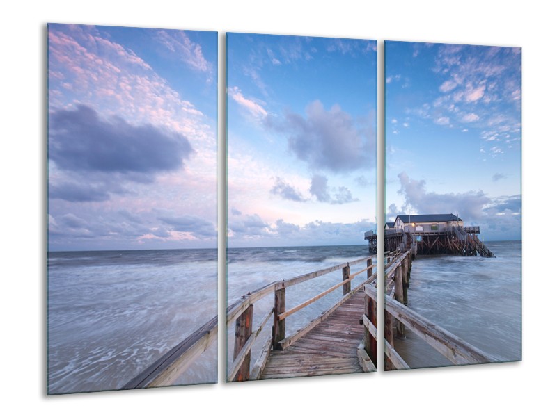 Glasschilderij Natuur, Water | Blauw, Grijs, Wit | 120x80cm 3Luik