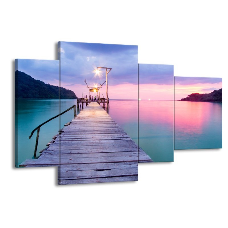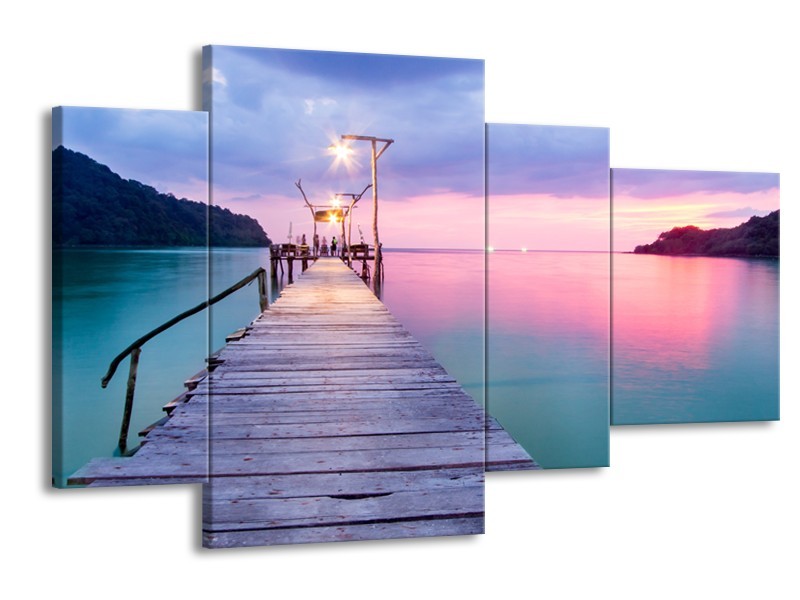 Glasschilderij Natuur, Water | Paars, Roze, Blauw | 120x75cm 4Luik