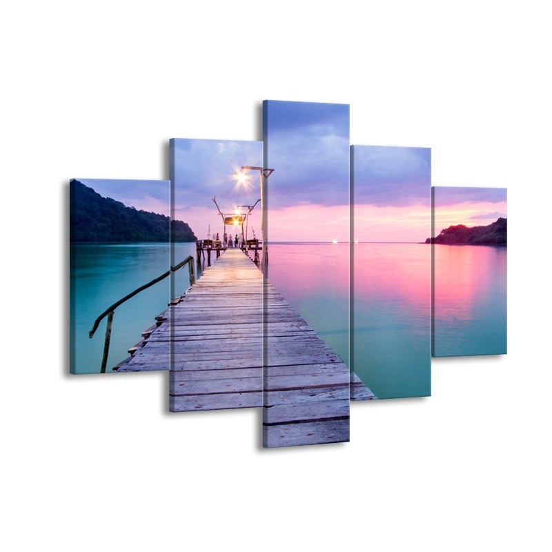 Glasschilderij Natuur, Water | Paars, Roze, Blauw | 150x105cm 5Luik