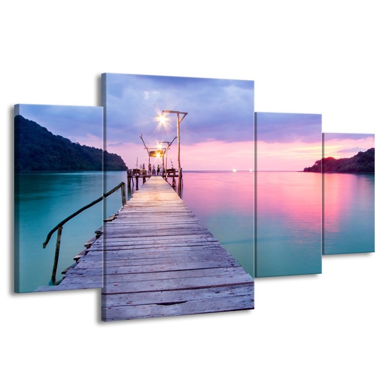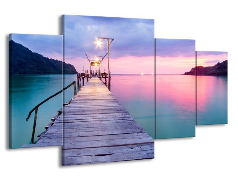 Glasschilderij Natuur, Water | Paars, Roze, Blauw | 160x90cm 4Luik