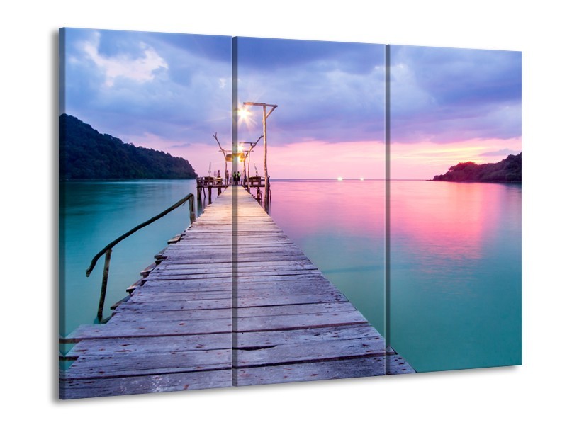 Glasschilderij Natuur, Water | Paars, Roze, Blauw | 60x90cm 3Luik