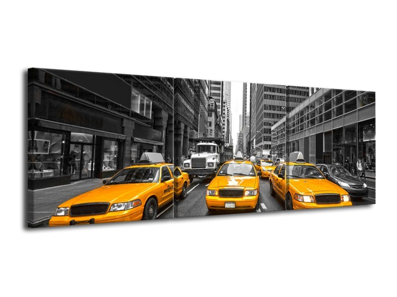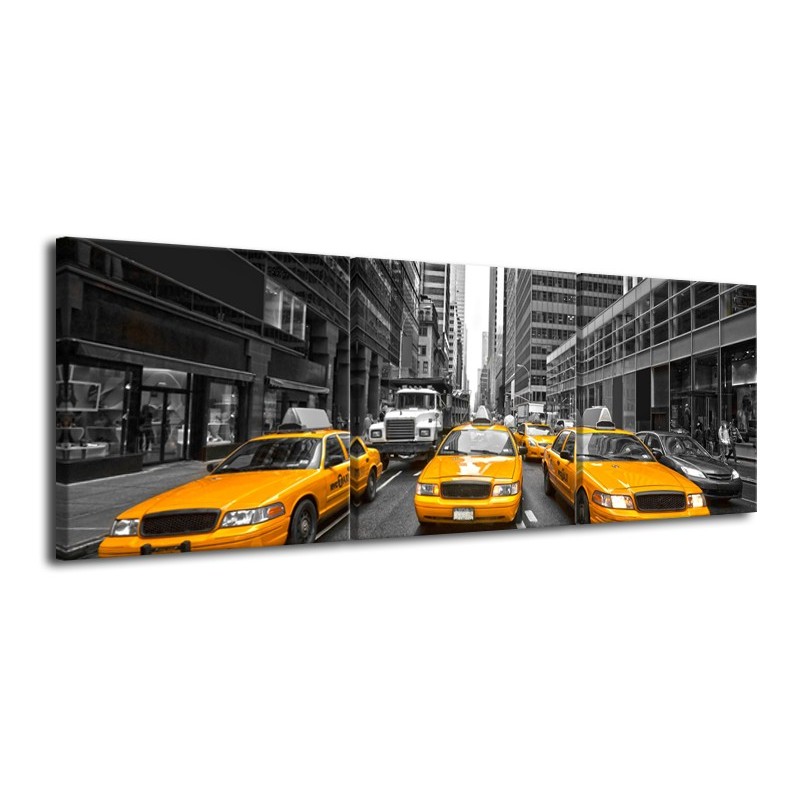Glasschilderij New York, Auto | Geel, Zwart, Wit | 120x40cm 3Luik
