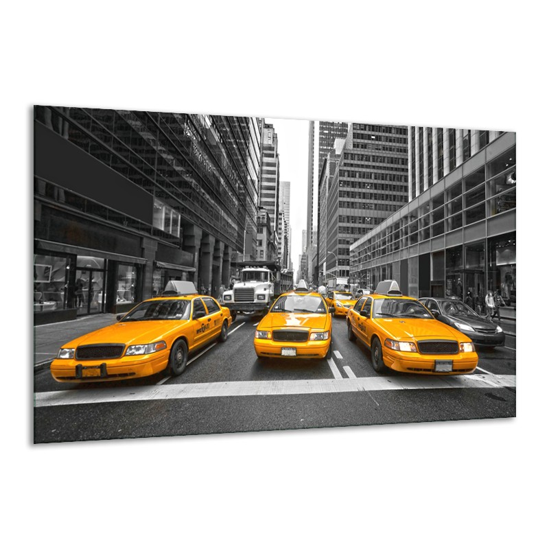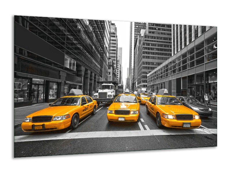 Glasschilderij New York, Auto | Geel, Zwart, Wit | 120x70cm 1Luik