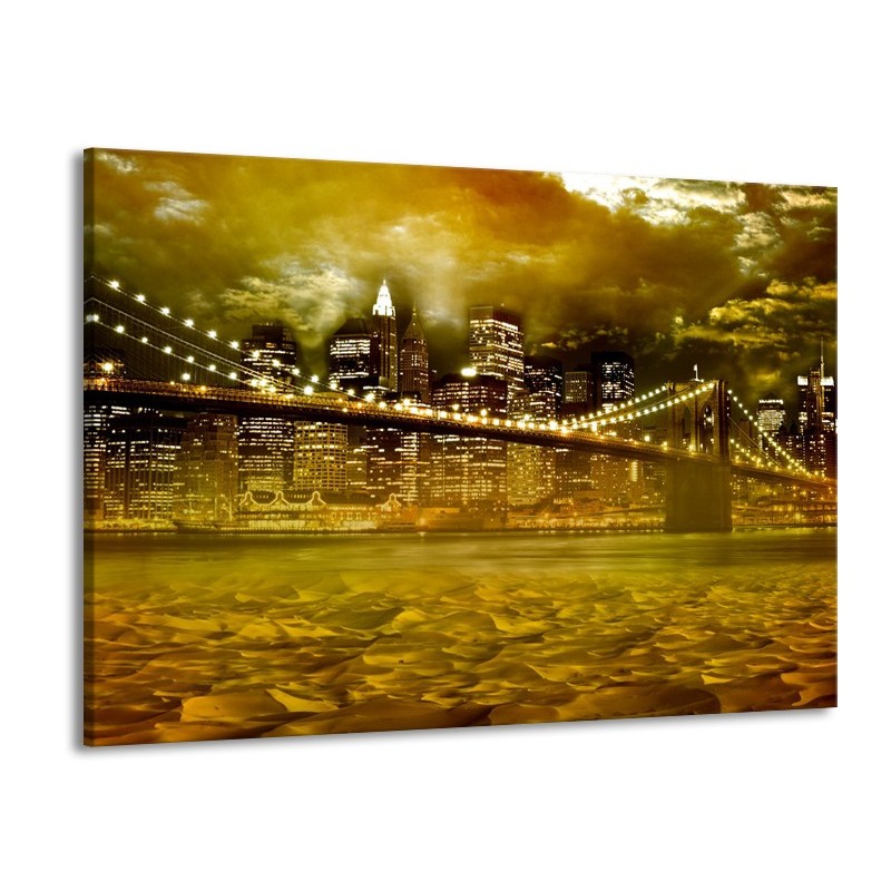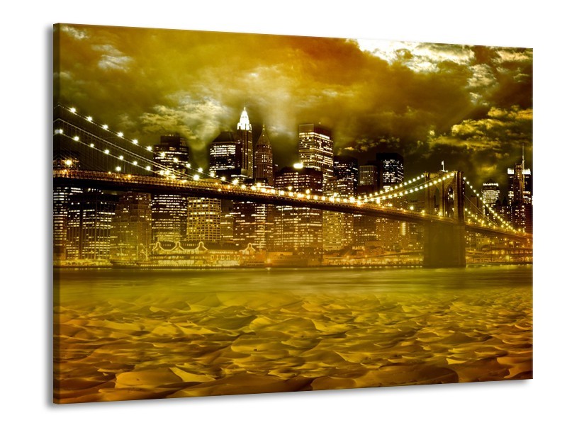 Glasschilderij New York, Brug | Oranje, Bruin, Groen | 100x70cm 1Luik