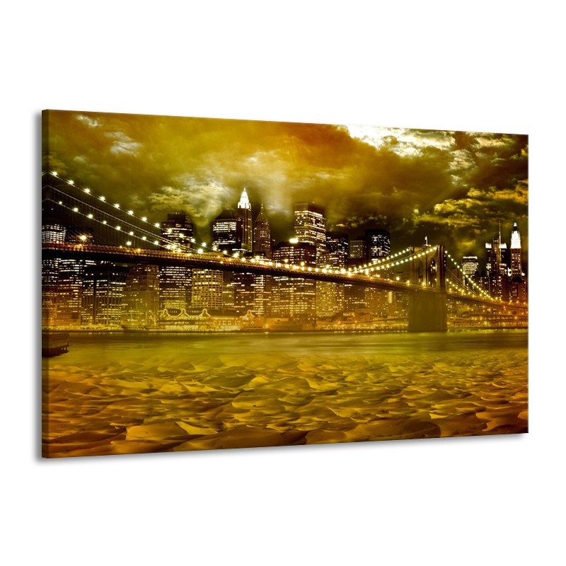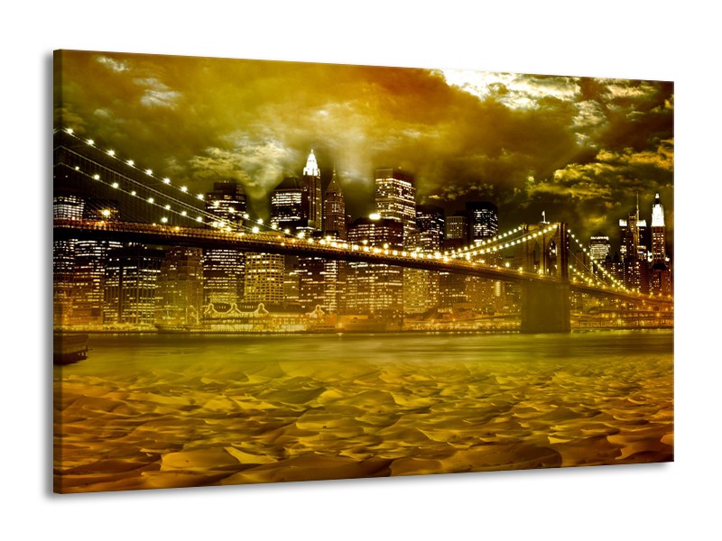 Glasschilderij New York, Brug | Oranje, Bruin, Groen | 140x90cm 1Luik