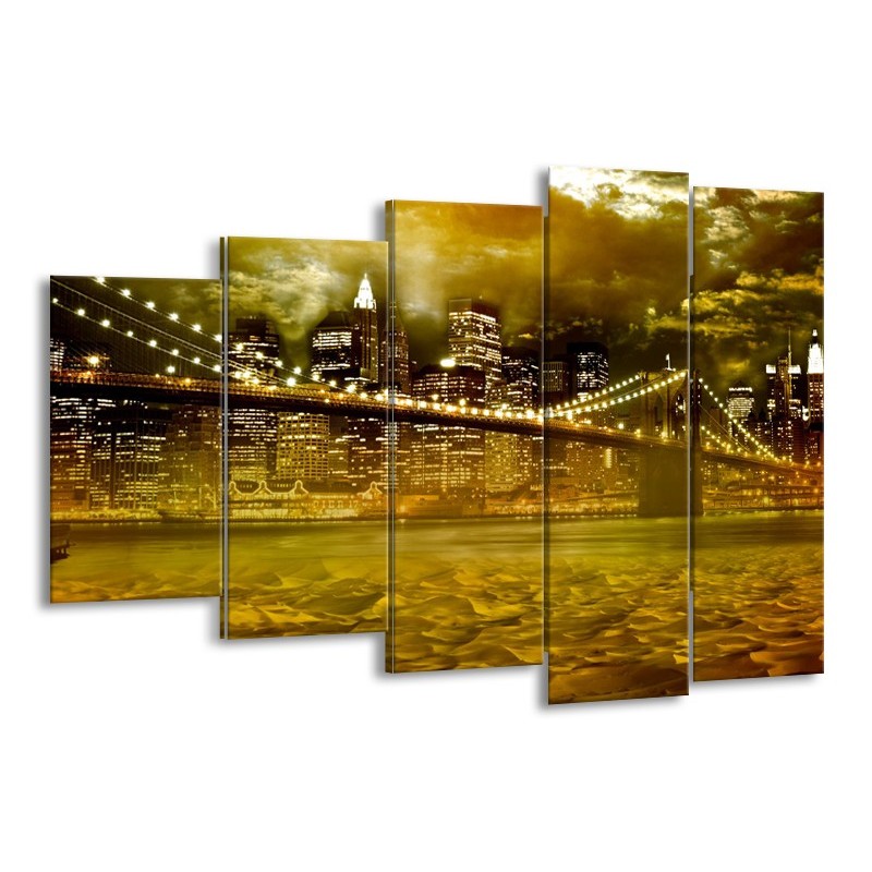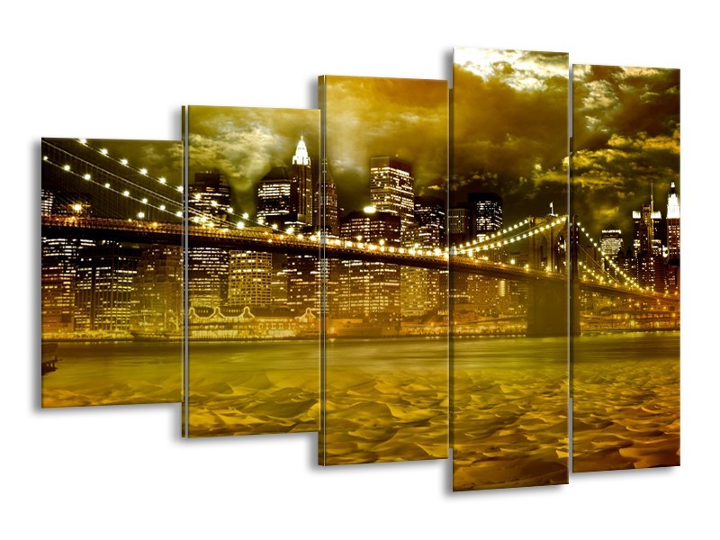 Glasschilderij New York, Brug | Oranje, Bruin, Groen | 150x100cm 5Luik