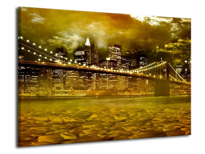Glasschilderij New York, Brug | Oranje, Bruin, Groen | 70x50cm 1Luik