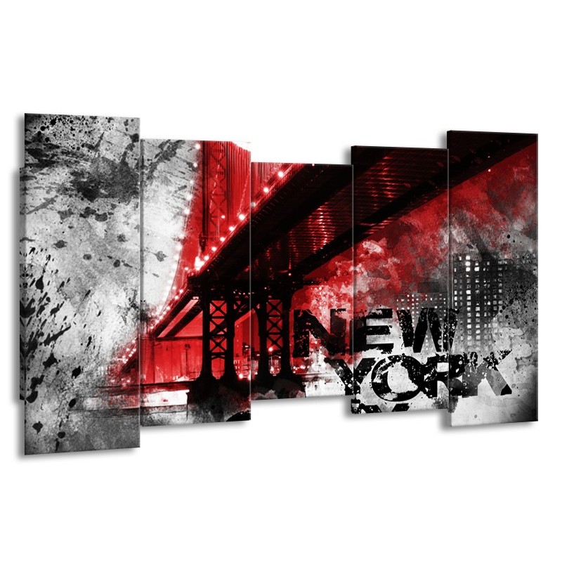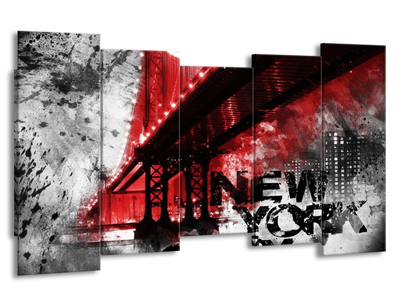 Glasschilderij New York, Brug | Rood, Zwart, Wit | 150x80cm 5Luik
