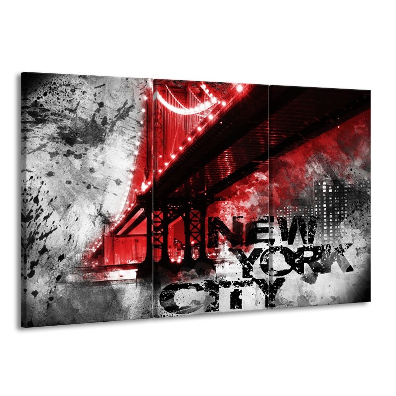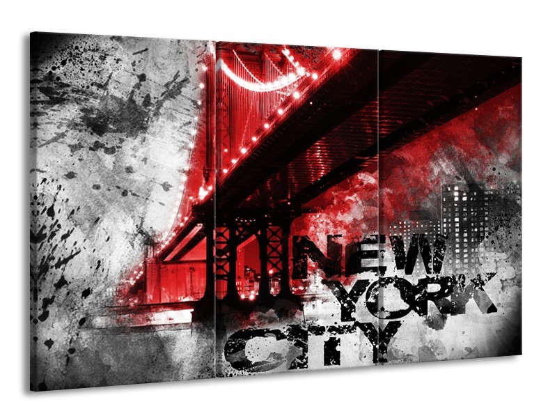 Glasschilderij New York, Brug | Rood, Zwart, Wit | 165x100cm 3Luik