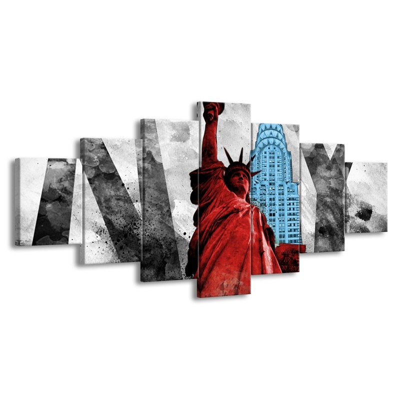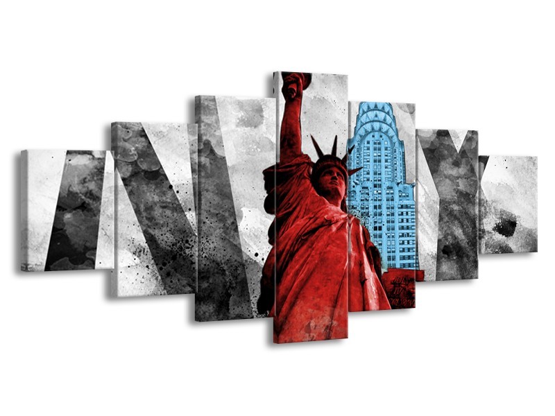 Glasschilderij New York, Vrijheidsbeeld | Rood, Grijs, Blauw | 210x100cm 7Luik