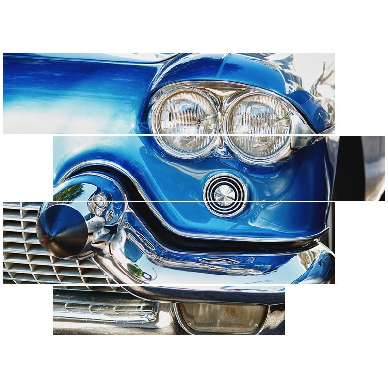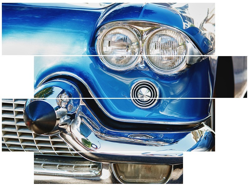 Glasschilderij Oldtimer, Auto | Blauw, Grijs, Zilver | 115x85cm 4Luik