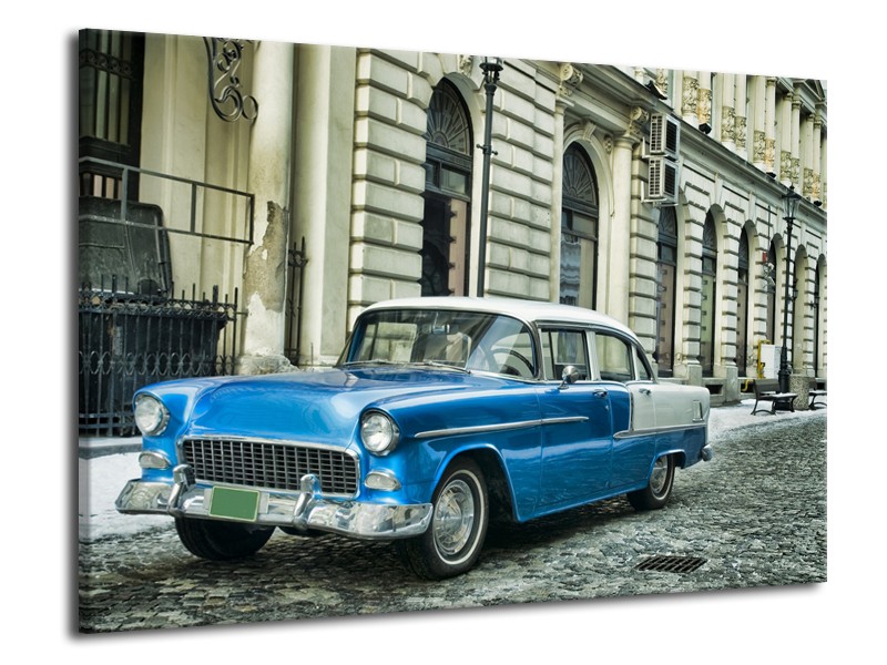 Glasschilderij Oldtimer, Auto | Blauw, Groen, Grijs | 70x50cm 1Luik