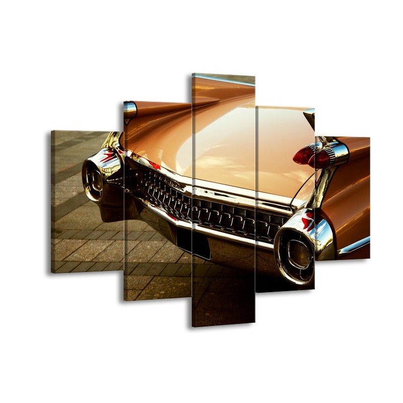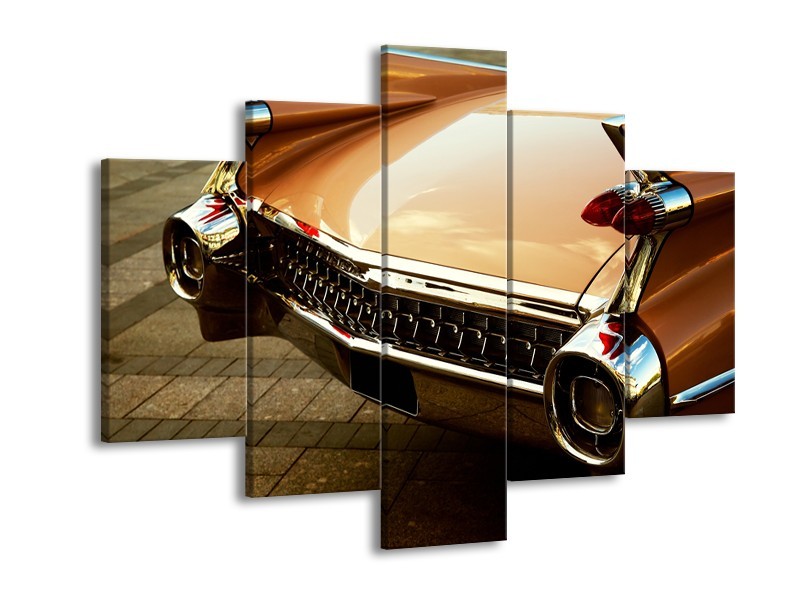 Glasschilderij Oldtimer, Auto | Bruin, Goud, Geel | 150x105cm 5Luik