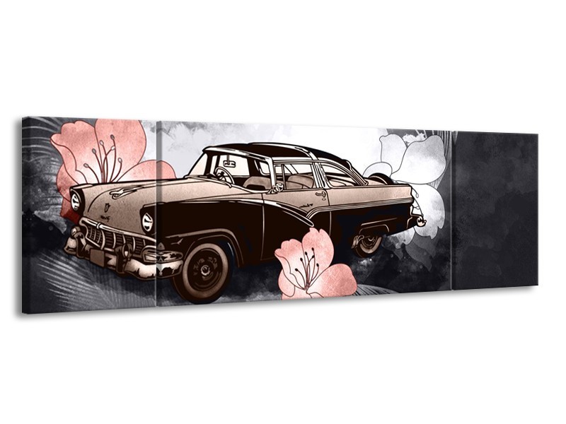 Glasschilderij Oldtimer, Auto | Grijs | 170x50cm 3Luik