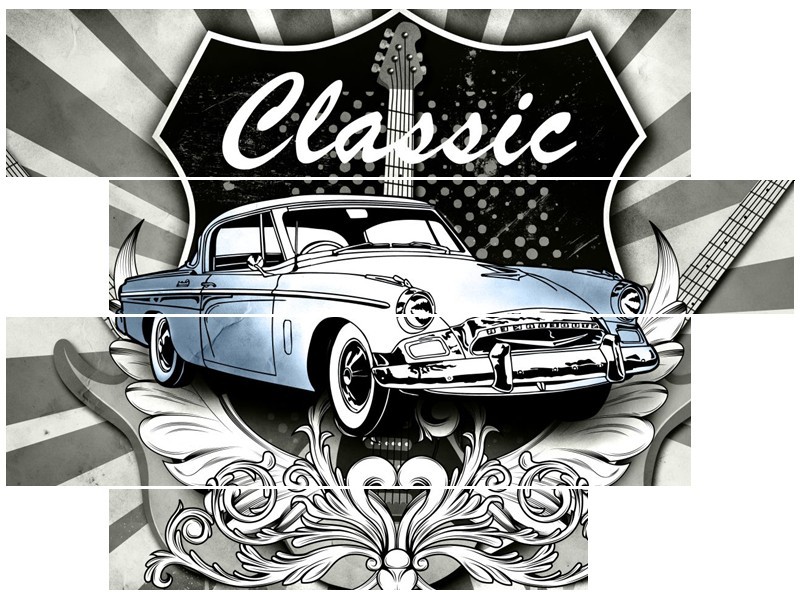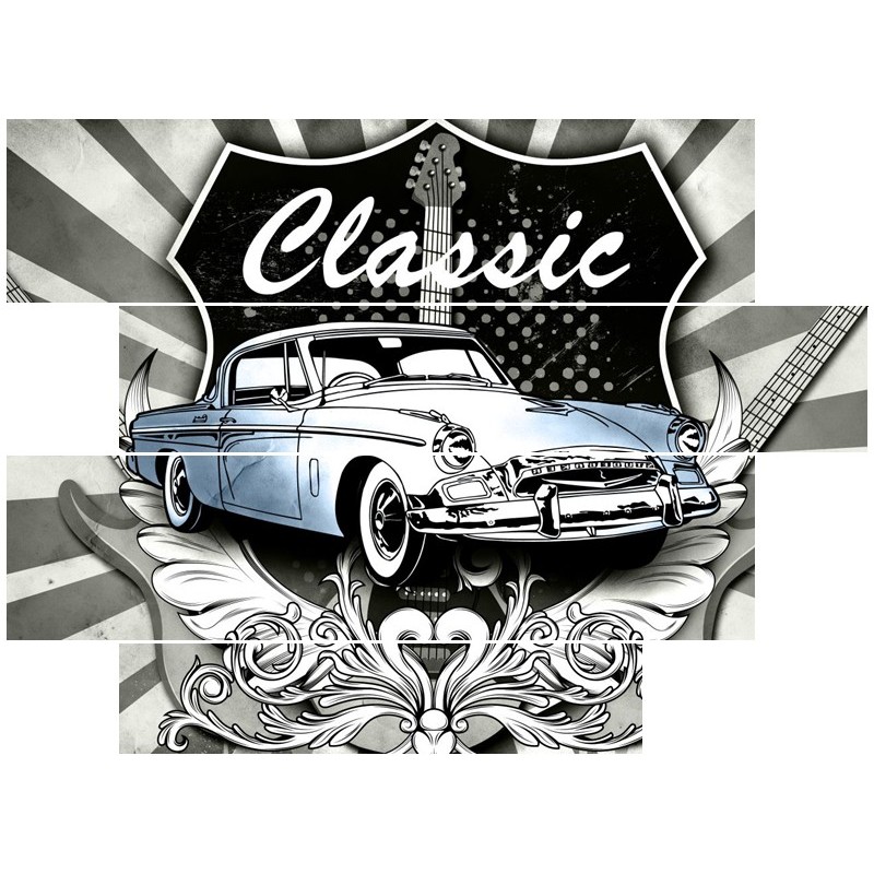 Glasschilderij Oldtimer, Auto | Grijs, Blauw | 115x85cm 4Luik