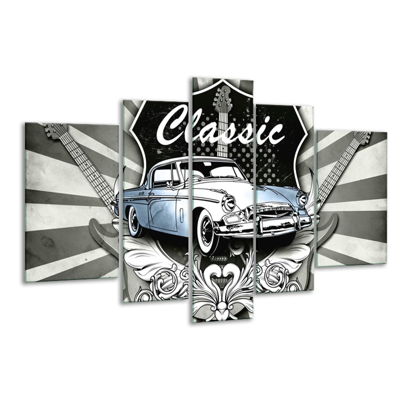 Glasschilderij Oldtimer, Auto | Grijs, Blauw | 170x100cm 5Luik
