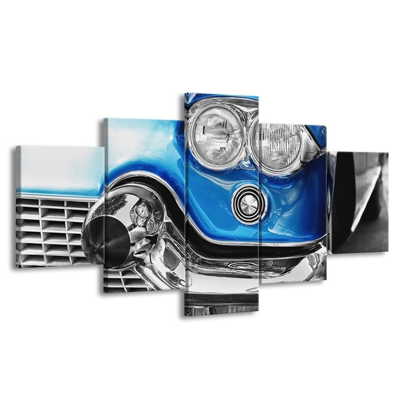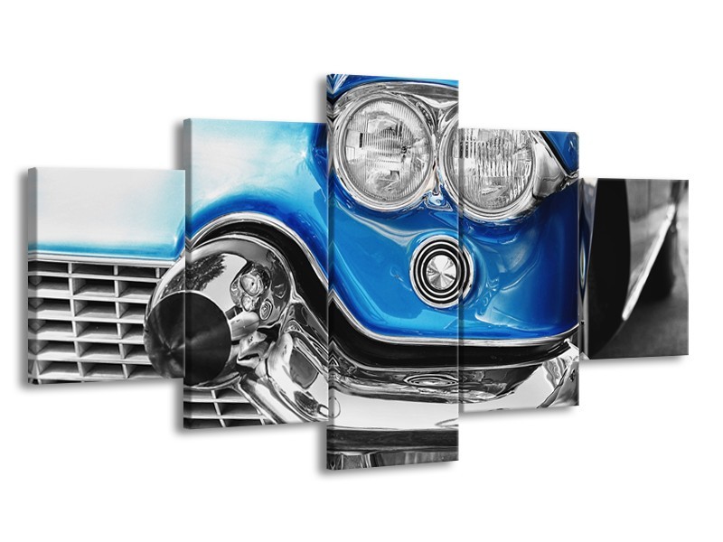 Glasschilderij Oldtimer, Auto | Grijs, Blauw, Zilver | 150x80cm 5Luik