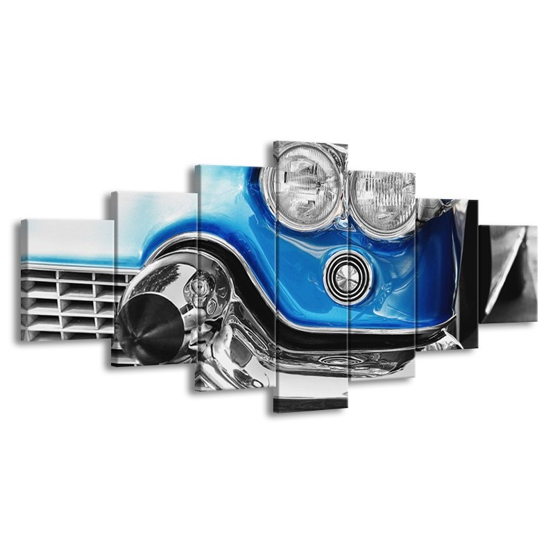 Glasschilderij Oldtimer, Auto | Grijs, Blauw, Zilver | 210x100cm 7Luik