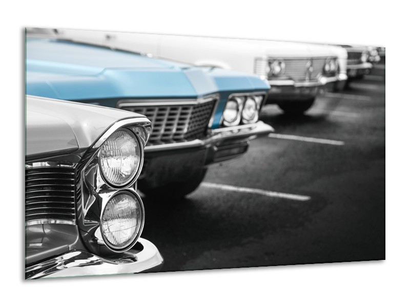 Glasschilderij Oldtimer, Auto | Grijs, Blauw, Zwart | 120x70cm 1Luik