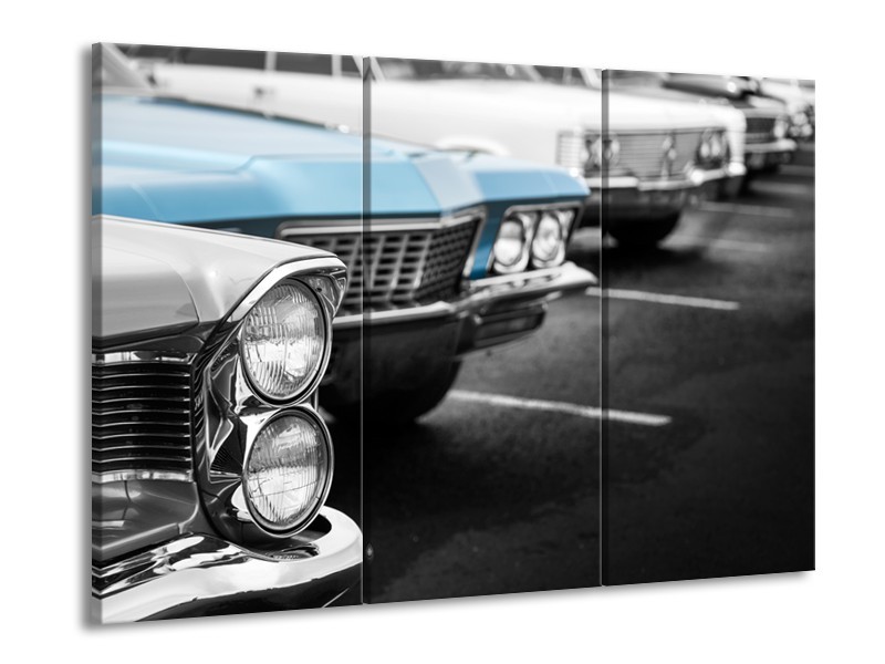 Glasschilderij Oldtimer, Auto | Grijs, Blauw, Zwart | 60x90cm 3Luik