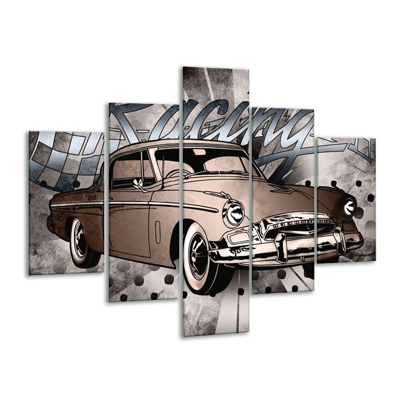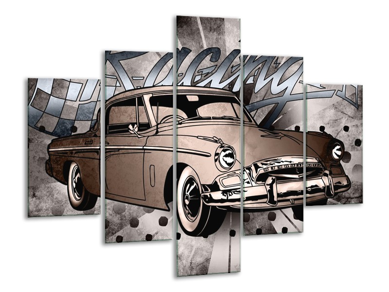 Glasschilderij Oldtimer, Auto | Grijs, Bruin | 100x70cm 5Luik