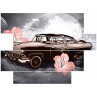 Glasschilderij Oldtimer, Auto | Grijs, Bruin, Roze | 115x85cm 4Luik