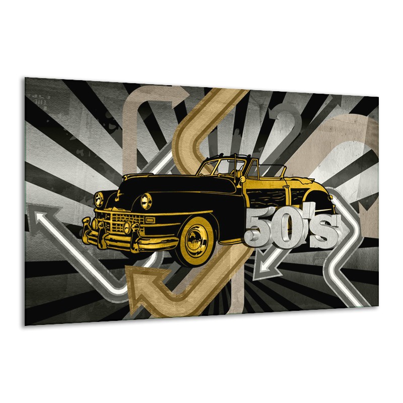 Glasschilderij Oldtimer, Auto | Grijs, Geel | 120x70cm 1Luik