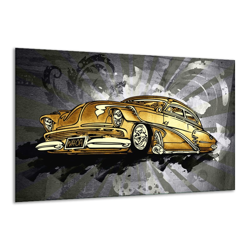 Glasschilderij Oldtimer, Auto | Grijs, Geel, Goud | 120x70cm 1Luik