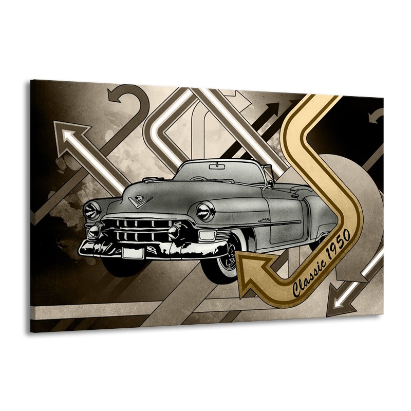 Glasschilderij Oldtimer, Auto | Grijs, Goud | 140x90cm 1Luik