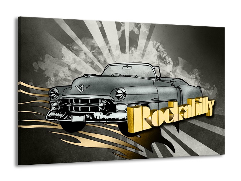 Glasschilderij Oldtimer, Auto | Grijs, Goud | 140x90cm 1Luik