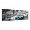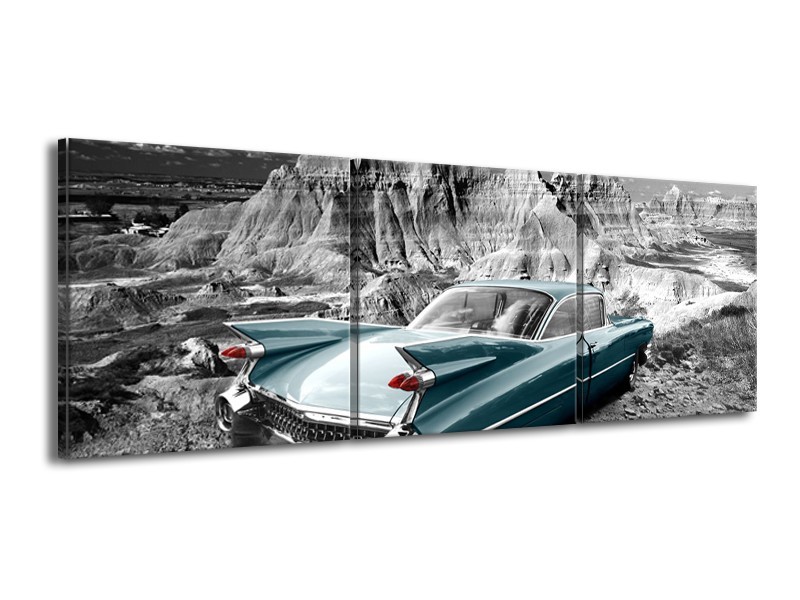 Glasschilderij Oldtimer, Auto | Grijs, Groen, Blauw | 150x50cm 3Luik