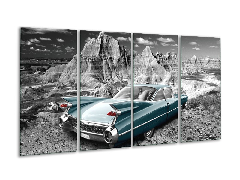 Glasschilderij Oldtimer, Auto | Grijs, Groen, Blauw | 160x80cm 4Luik