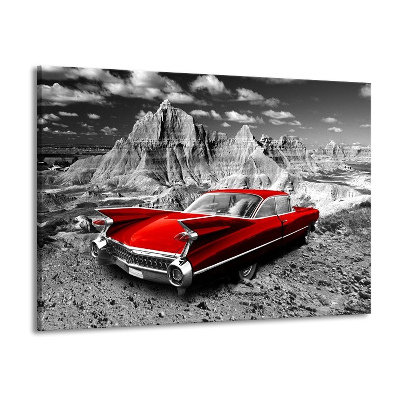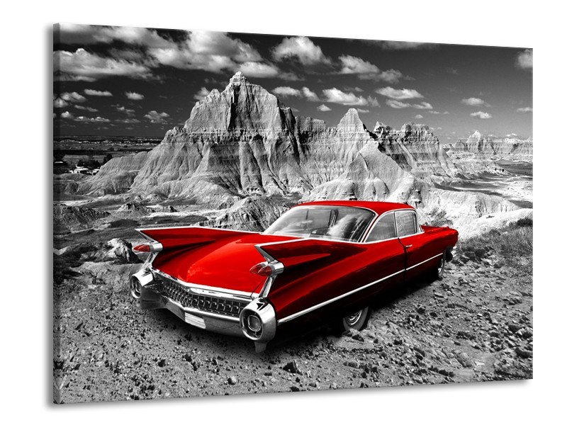 Glasschilderij Oldtimer, Auto | Grijs, Rood | 100x70cm 1Luik