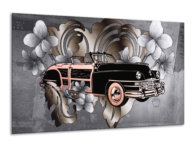 Glasschilderij Oldtimer, Auto | Grijs, Zwart | 120x70cm 1Luik