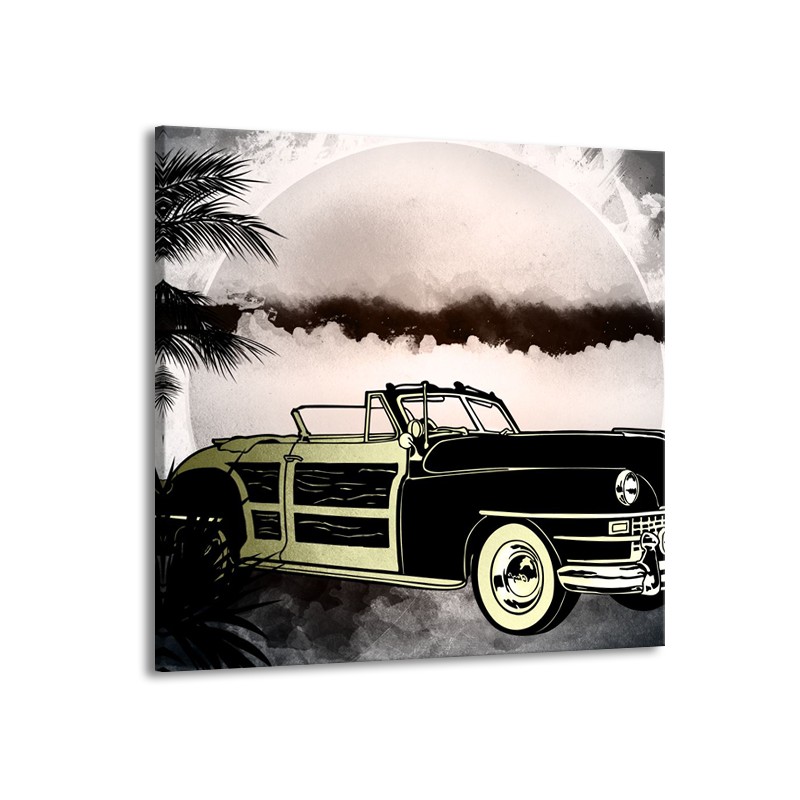 Glasschilderij Oldtimer, Auto | Grijs, Zwart | 70x70cm 1Luik