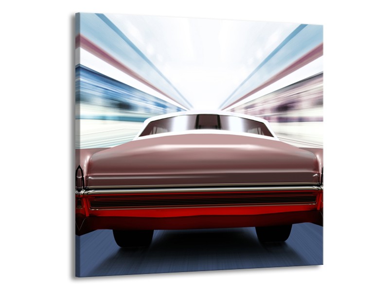 Glasschilderij Oldtimer, Auto | Rood, Bruin, Grijs | 70x70cm 1Luik