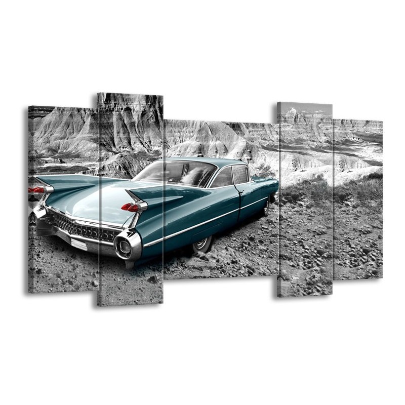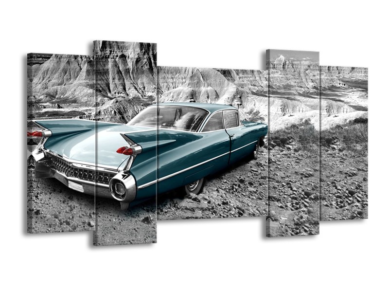 Glasschilderij Oldtimer, Auto | Zwart, Wit | 120x65cm 5Luik