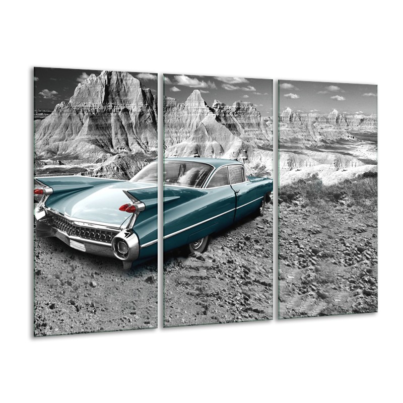 Glasschilderij Oldtimer, Auto | Zwart, Wit | 120x80cm 3Luik
