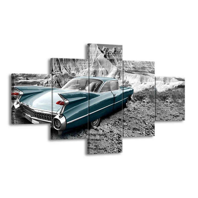 Glasschilderij Oldtimer, Auto | Zwart, Wit | 125x70cm 5Luik