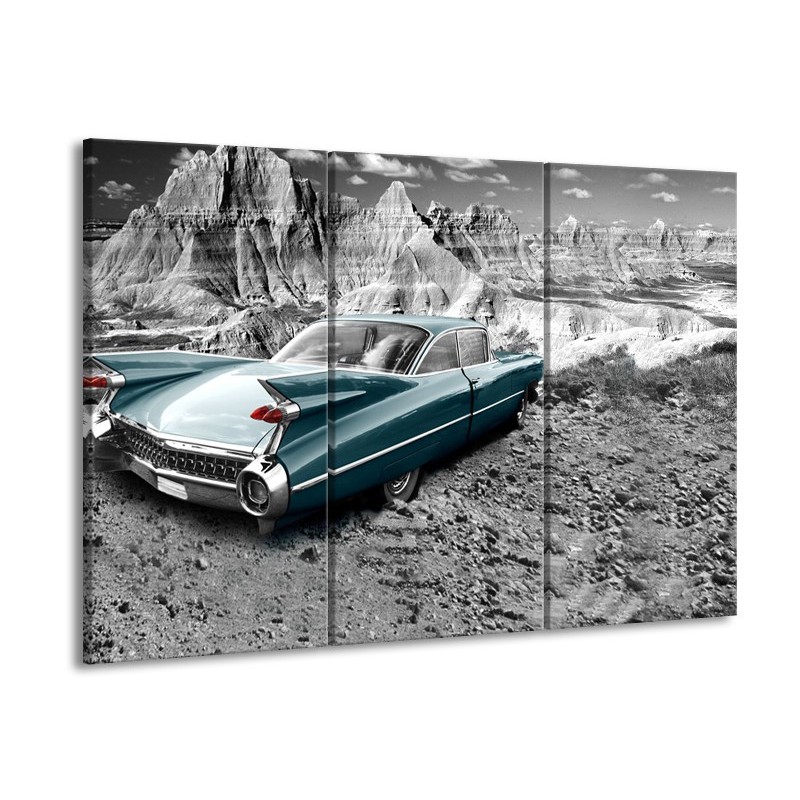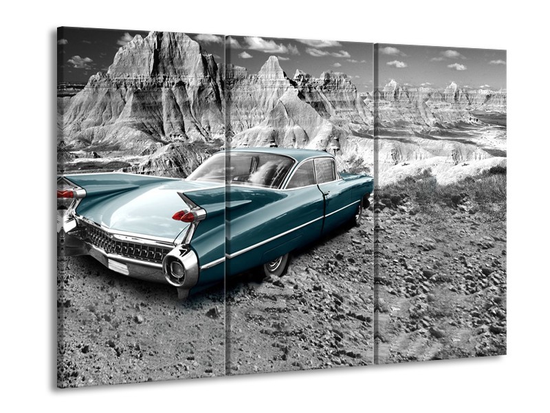 Glasschilderij Oldtimer, Auto | Zwart, Wit | 60x90cm 3Luik