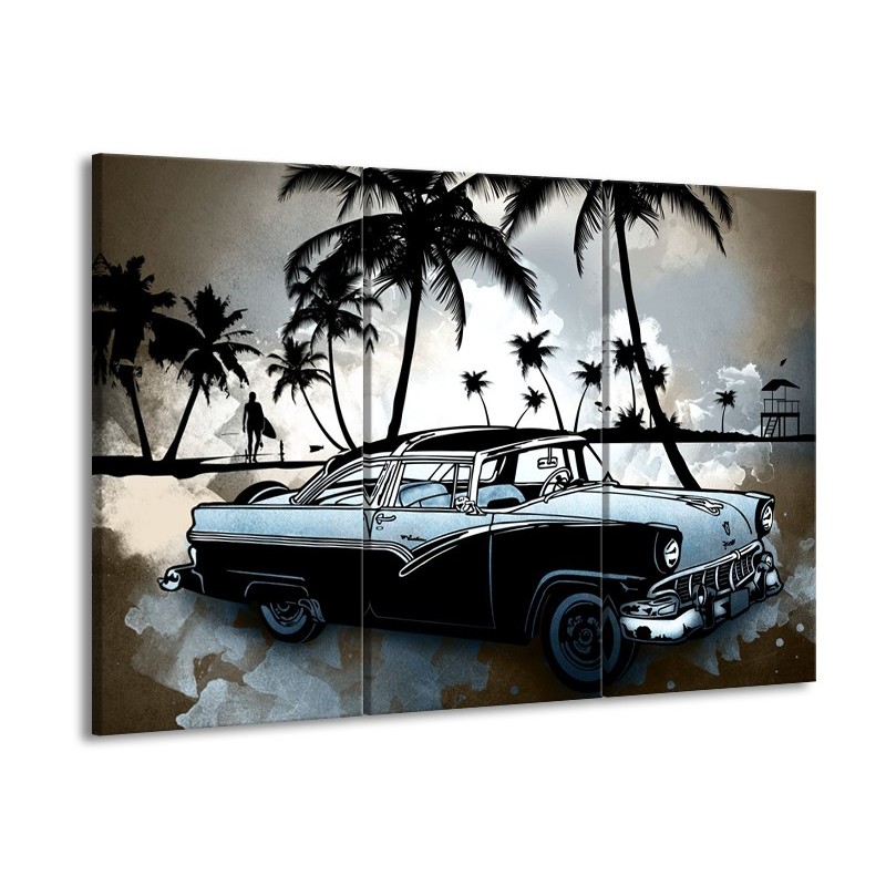 Glasschilderij Oldtimer, Auto | Zwart, Wit, Blauw | 60x90cm 3Luik