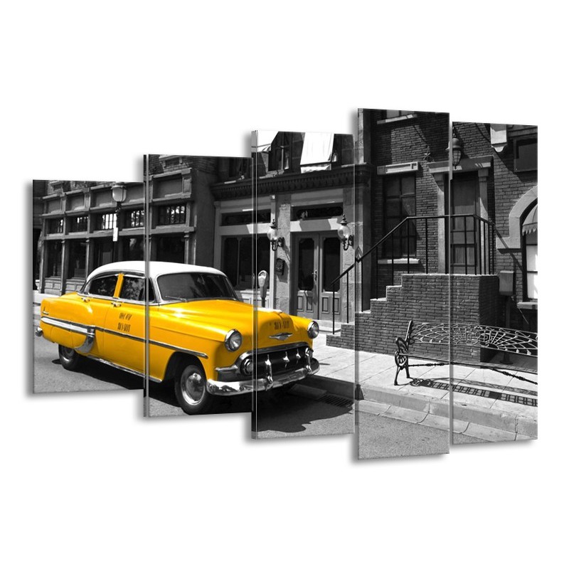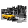 Glasschilderij Oldtimer, Auto | Zwart, Wit, Geel | 150x100cm 5Luik