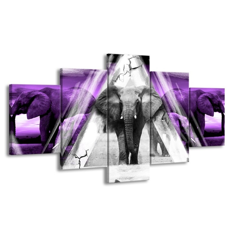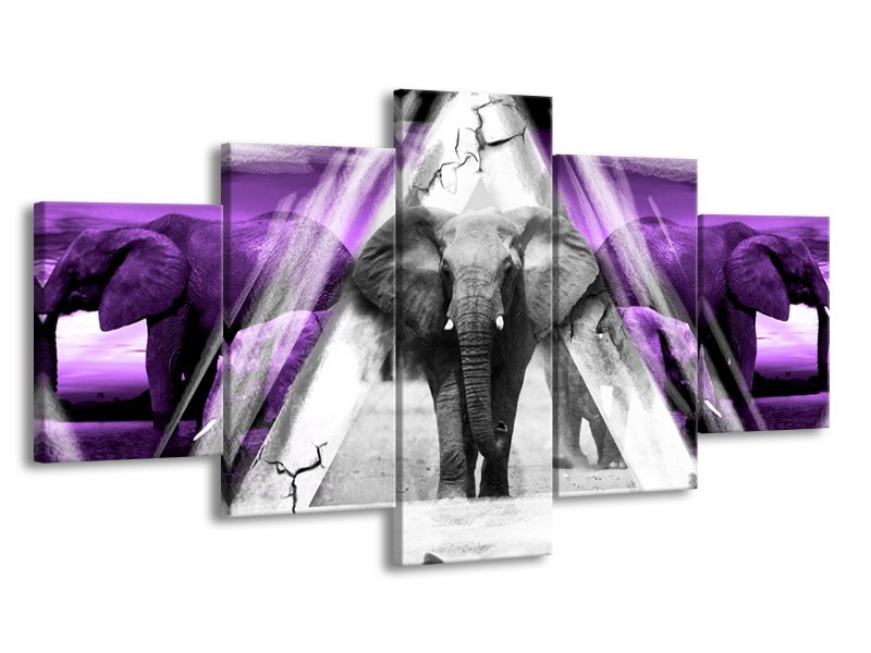 Glasschilderij Olifant, Dieren | Paars, Grijs, Zwart | 150x80cm 5Luik