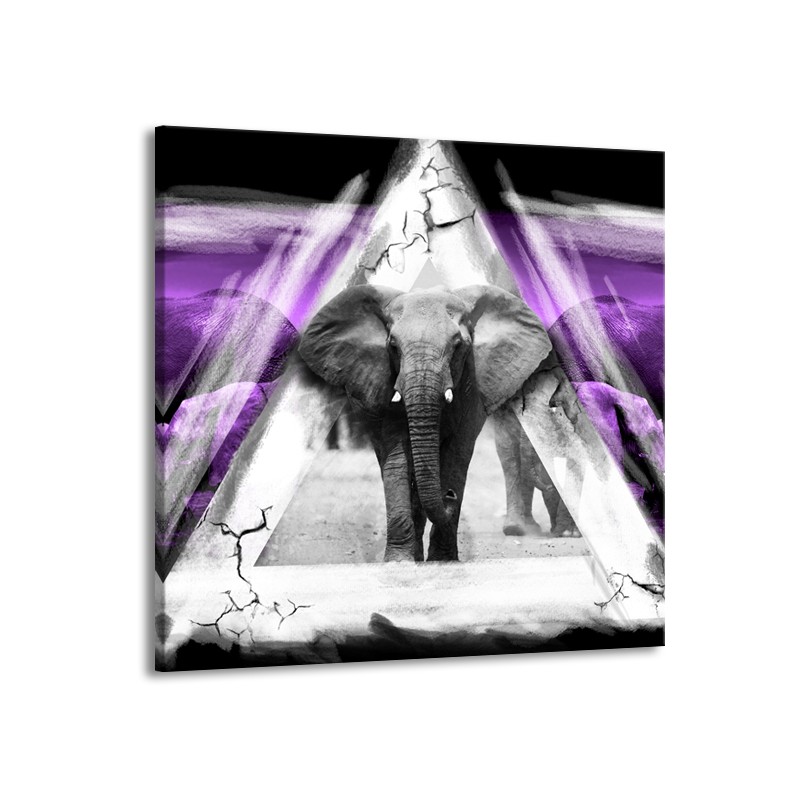 Glasschilderij Olifant, Dieren | Paars, Grijs, Zwart | 70x70cm 1Luik