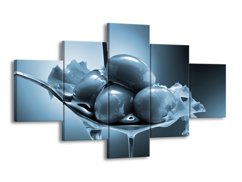 Glasschilderij Olijven, Keuken | Blauw, Grijs | 125x70cm 5Luik