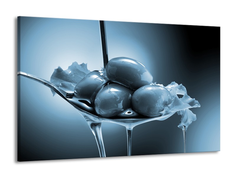 Glasschilderij Olijven, Keuken | Blauw, Grijs | 140x90cm 1Luik