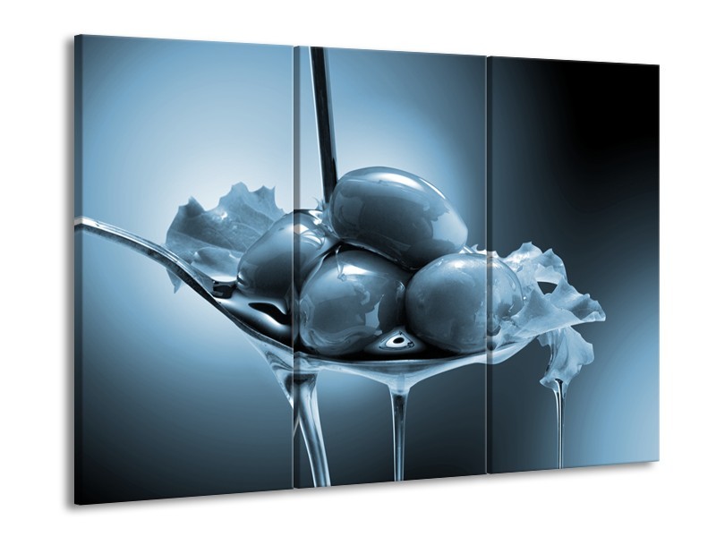 Glasschilderij Olijven, Keuken | Blauw, Grijs | 60x90cm 3Luik